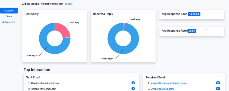 ZillionEmails gives you instant insight into response times, workload, and team performance — so you can fix problems fast, delight customers, and grow confidently.
