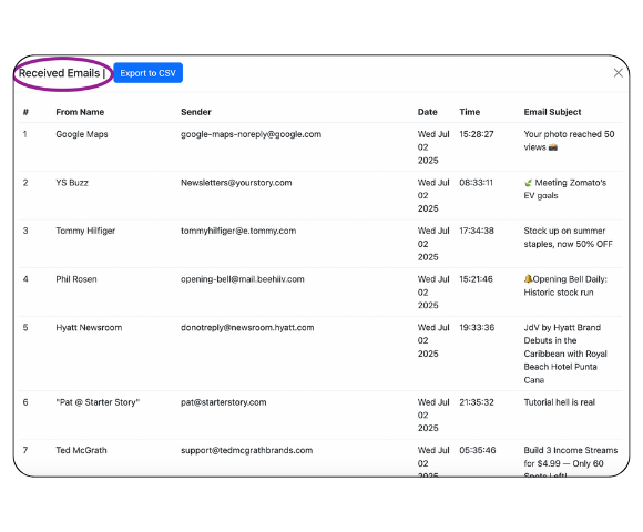 ZillionEmails requires no software installation or training—setup is seamless and takes less than a minute. It connects via secure API-based access, meaning there are no changes to your existing workflow. We collect only email header metadata—such as sender, recipient, timestamps, and subject lines—never the body content of emails, ensuring your communication remains fully private.